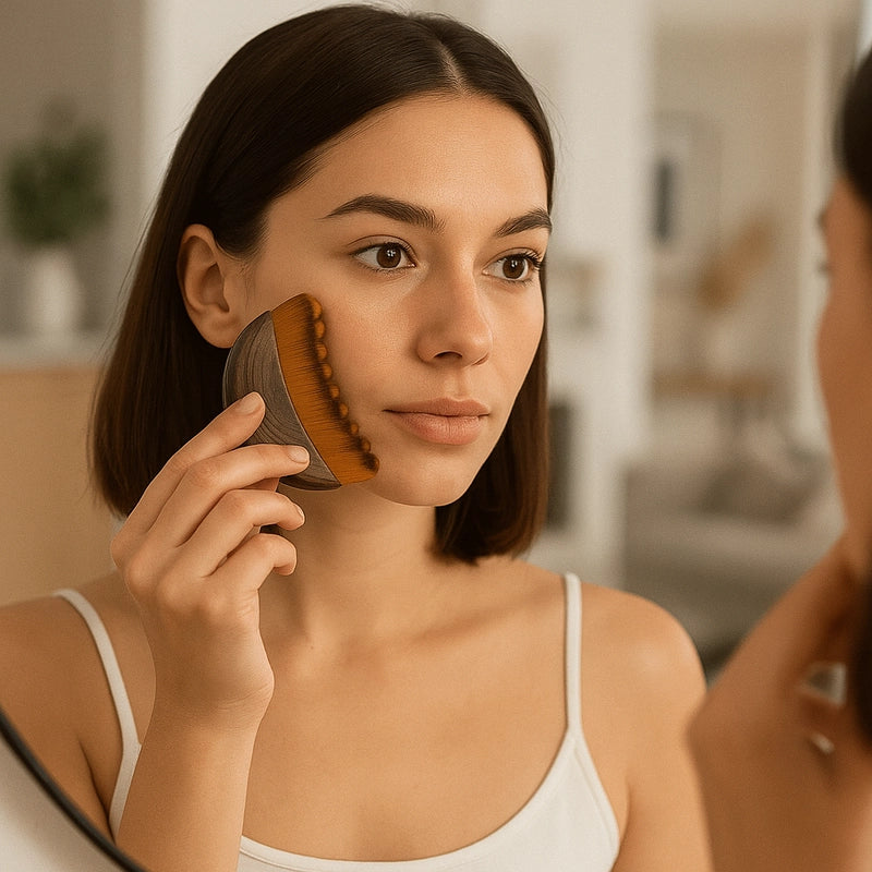 Our brush is made with ultra-soft PBT bristles — a premium, skin-safe material that’s silky to the touch, gentle on delicate facial skin, and completely hygienic. It doesn’t absorb moisture or bacteria, making it perfect for daily facial massage and lymphatic drainage